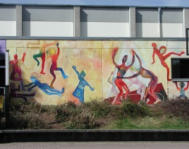 | Gangolfsweg 39: Gegründet 1968 als Gymnasium des Kreises Aachen, seit 1972 Städtisches Gymnasium für Mädchen und Jungen, zur Zeit etwa 950 Schülerinnen und Schüler, 4 - 5 parallele Klassen. Der Erweiterungsbau für Aula und Fachräume wurde Anfang Oktober 2008 bezogen.Weitere Informationen der Schule siehe Internetseite des Gymnasiums Die Wandmalereien an der Turnhalle wurden im Rahmen der Aktion "Mural Global" während einer Projektwoche 2003 gemeinsam mit Schülern der Partnerschule in Südafrika geschaffen. |