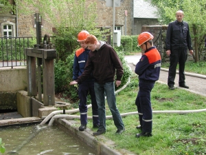 Die Freiwillige Feuerwehr holt wieder frisches Wasser aus der Inde. Die untere