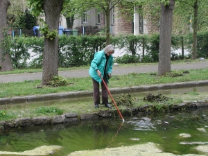 waren bis zu 16 Helfer aktiv, den Park von Ästen und Laub und das Gewässer von Laub und Algen zu befreien.